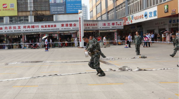 2017年6月28日,宣武集團在商貿(mào)城開展消防綜合演練活動?;顒又?,集團經(jīng)濟護衛(wèi)隊、市場業(yè)戶、消防隊進行了擒敵拳、班隊列、消防水帶連接、滅油盆火4個項目業(yè)務(wù)技能匯報表演,并與云龍消防大隊聯(lián)合進行了一次滅火和應(yīng)急疏散演練。通過演練,進一步提升了職工、業(yè)戶的消防安全意識和應(yīng)急處置能力。房管局系統(tǒng)、云龍區(qū)相關(guān)領(lǐng)導(dǎo)及駐市場工商、稅務(wù)等領(lǐng)導(dǎo)觀摩演練,并對演練效果給予高度評價。